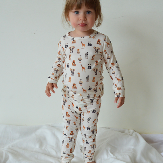 Vårt todelte bambussett er perfekt som første lag på kalde dager, som pysjamas eller som koseklær. Laget for å gi komfort og varme, vil dette settet raskt bli en favoritt i både lek og hvile.
