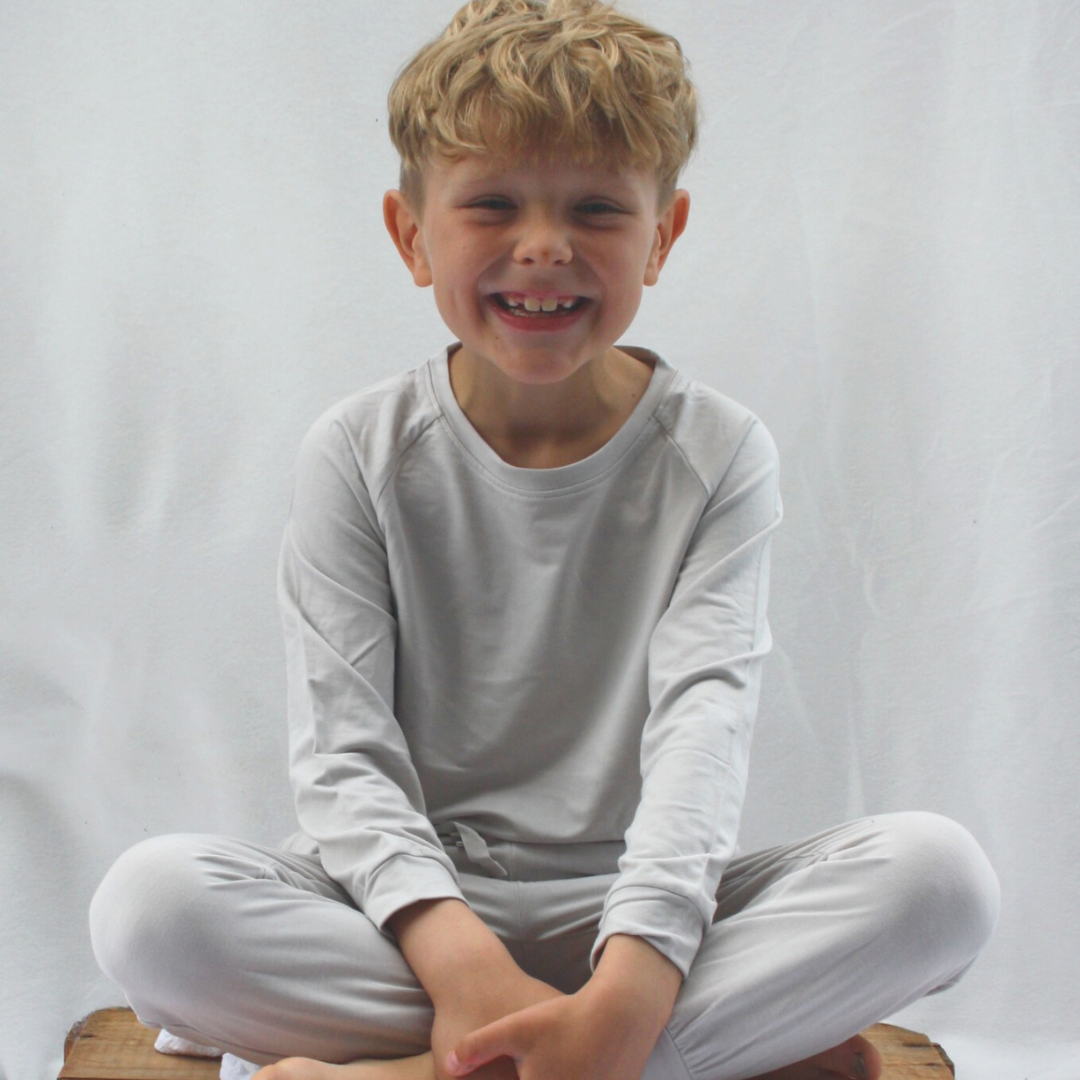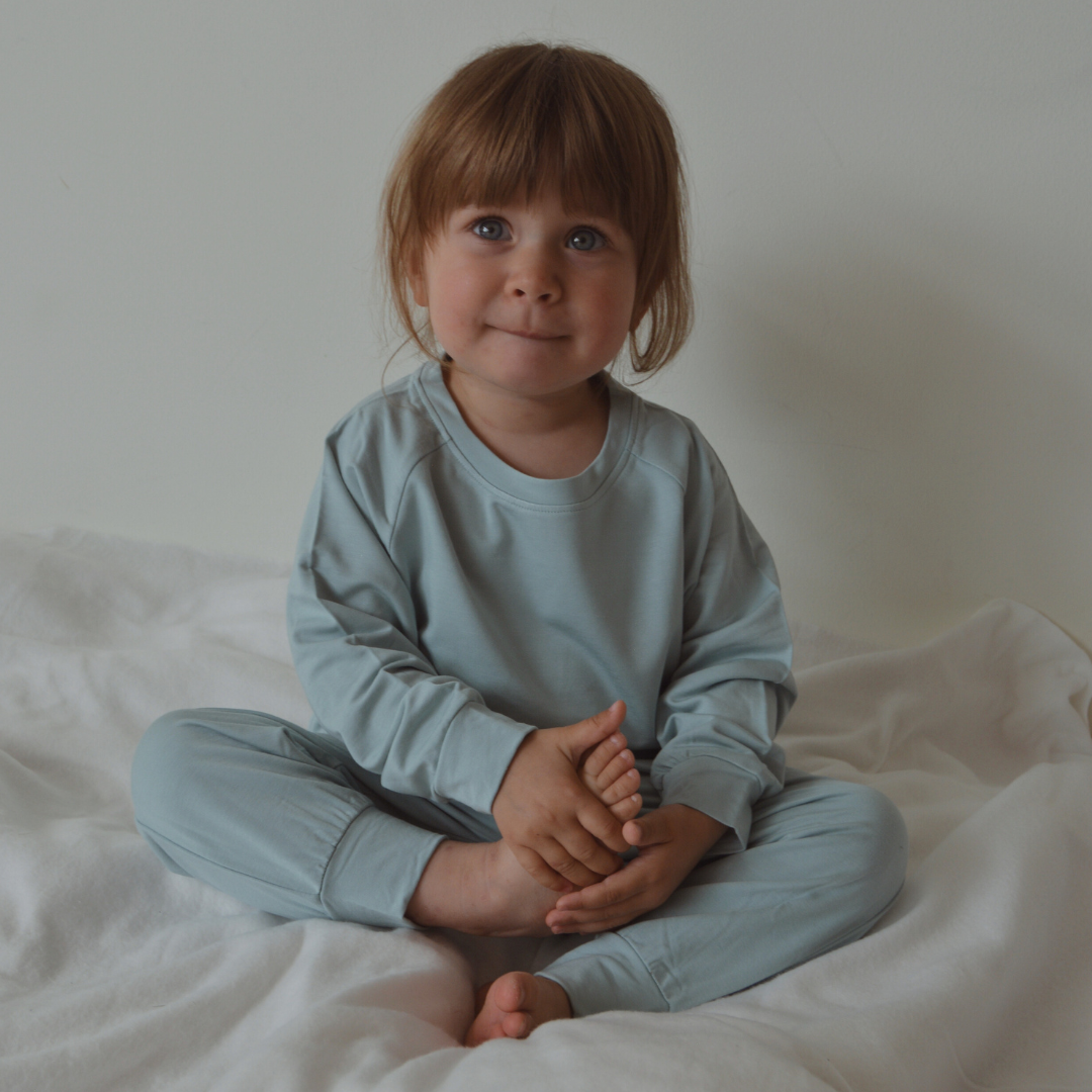 Denne myke og komfortable joggedressen er laget av 95% bambus og 5% spandex. Den passer perfekt for barn i alderen 1-5 år. Laget av french terry-stoff, gir dressen god pusteevne og bevegelsesfrihet.